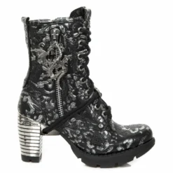 Gris chromĂ© et noir en cuir voilĂ l’originalitĂ© de ces bottes New Rock en plus du talon en mĂ©tal, la bottines a sur son cĂŽtĂ© extĂ©rieur une fermeture Ă©clair de dĂ©coration et un dragon et pour un enfilage facile vous retrouverez Ă©galement une autre fermeture Ă©clair mais vrai celle-ci ! toute la bottine a un dĂ©cor baroque en gris chromĂ©.