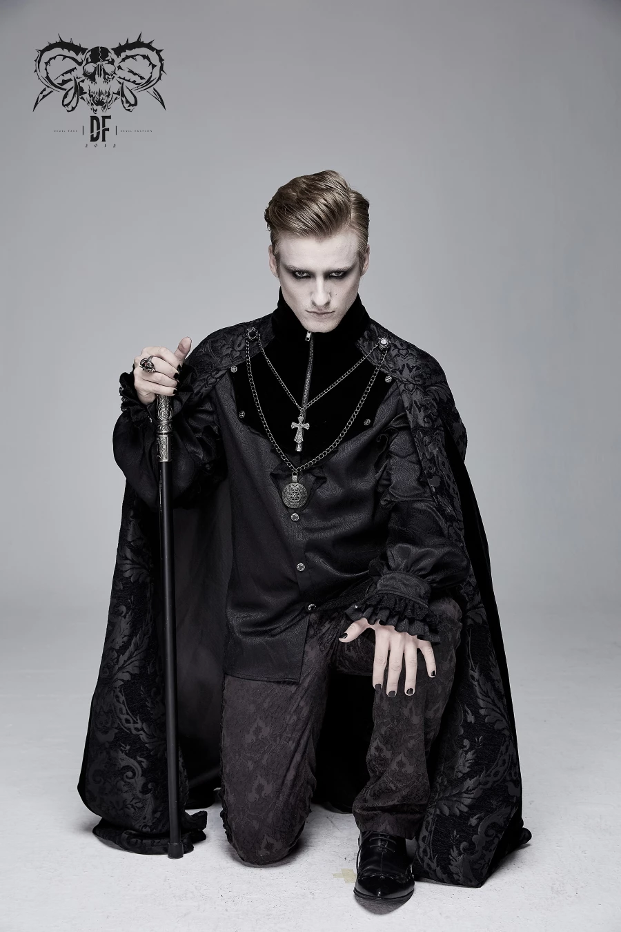 Bijoux amovibles montés sur une double chaßne avec une croix gothique et un cercle antique, vous pouvez les passer par les 2 gros boutons de décoration sur les épaules pour un super look comme sur nos photos