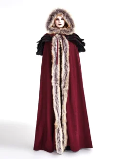 Une véritable cape gothique hors du commun, idéale pour affronter les rudes nuits d’hiver grâce à sa laine et sa doublure, réservée aux amatrices de look hors normes