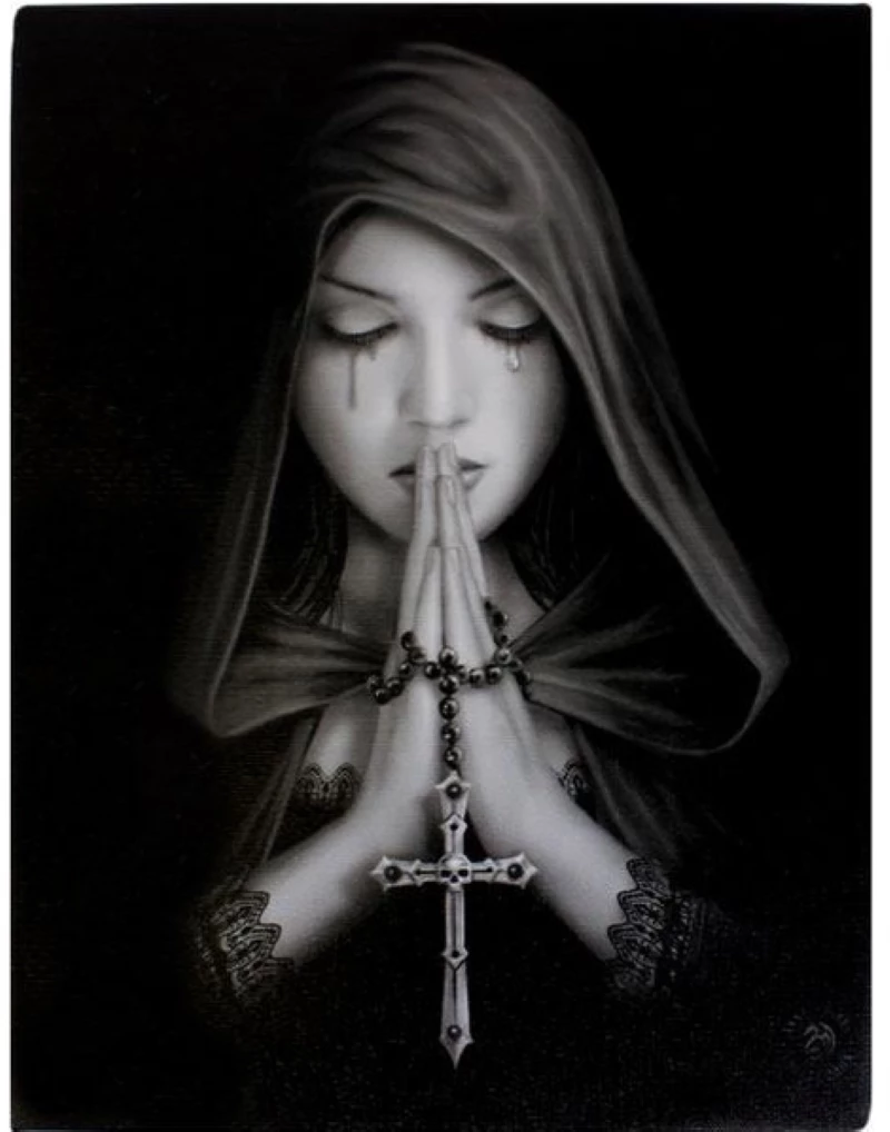Le dessin signé Anne Stokes est représente une femme gothique priant, design emblématique et le plus connu de la fameuse artiste