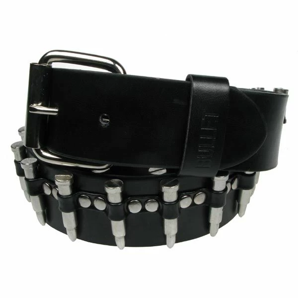 Belle ceinture en simili cuir noir décorée de nombreuses balles chromées (imitation), un grand classique du milieu rock, métalleux et gothique