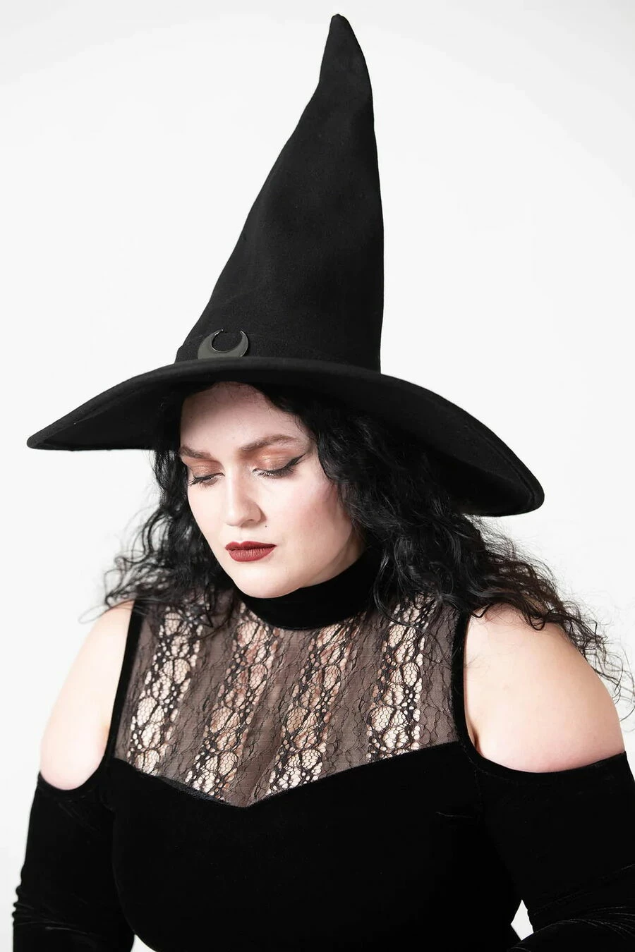 Ce grand chapeau de sorcière est fabriqué en laine synthétique de haute qualité