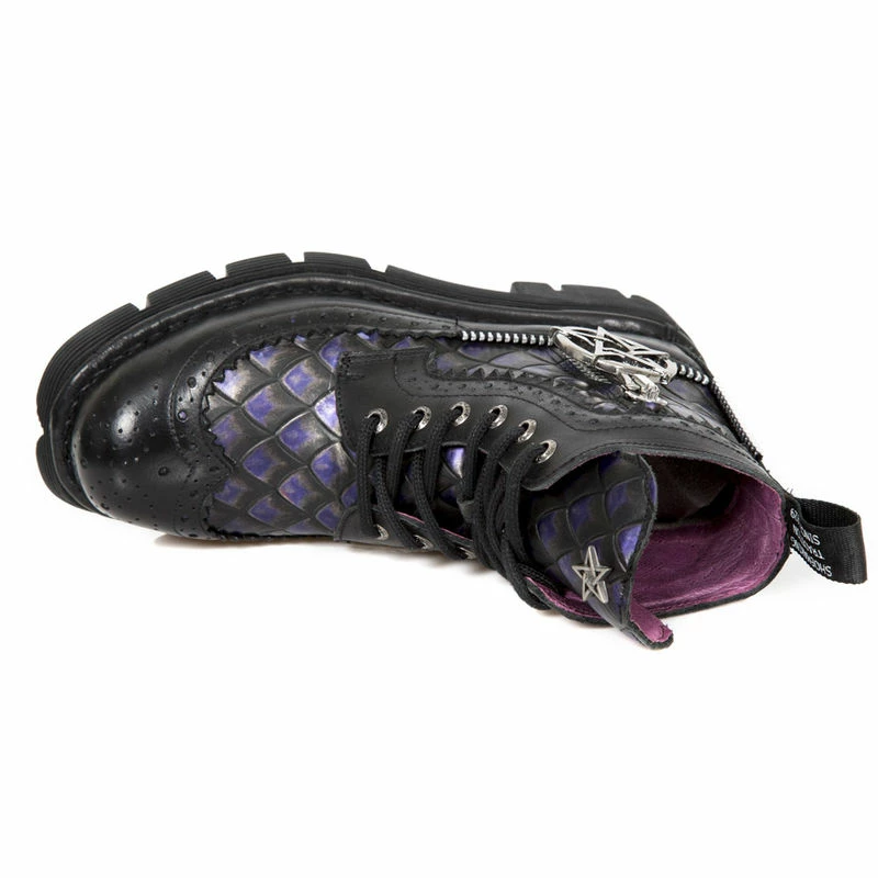 Sensationnelles chaussures en cuir noir et violet de type rangers