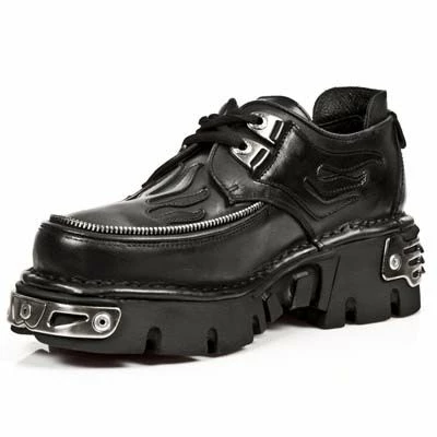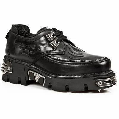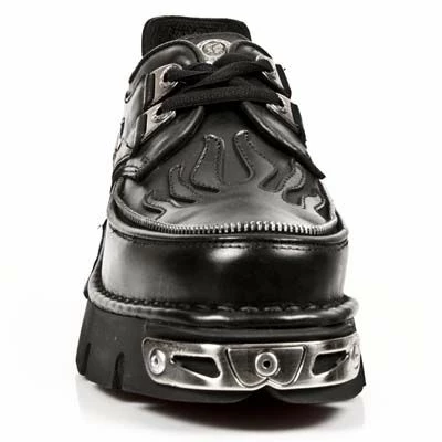 Belle paire de chaussures en cuir noir décorée de flammes ton sur ton, elle possÚdes les semelles reator avec des fers métalliques