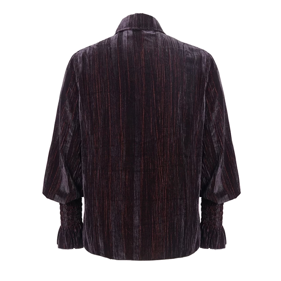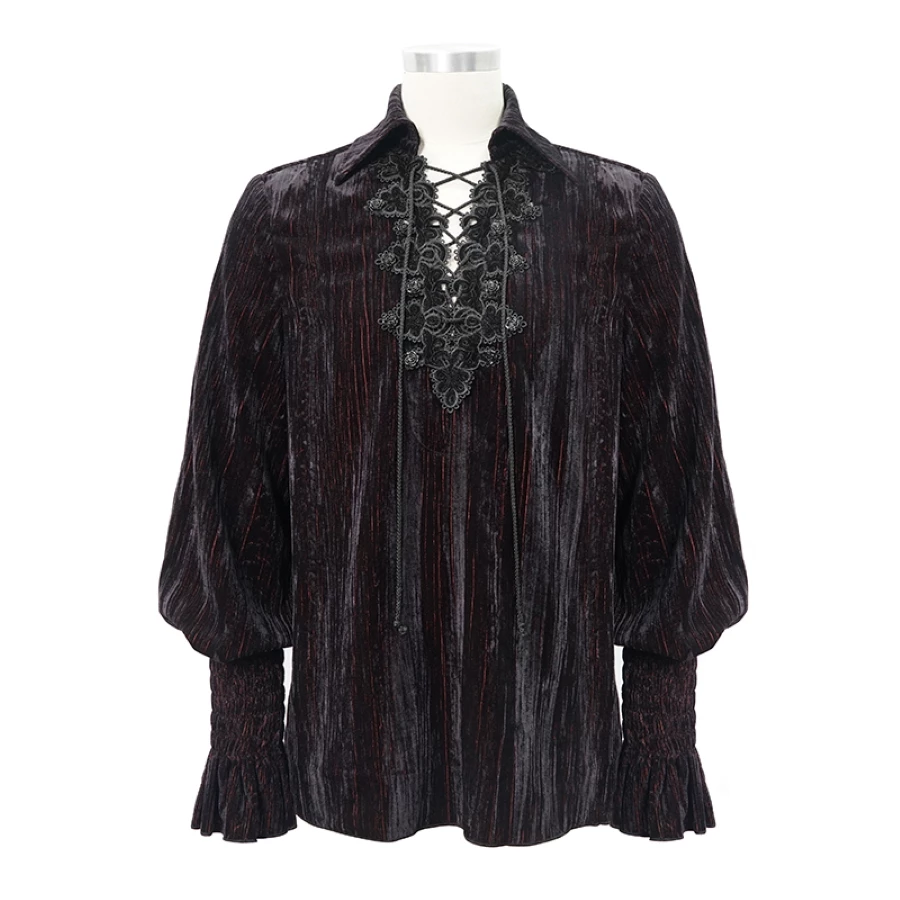 Chemise de coupe ample style pirate en velours noir et rouge