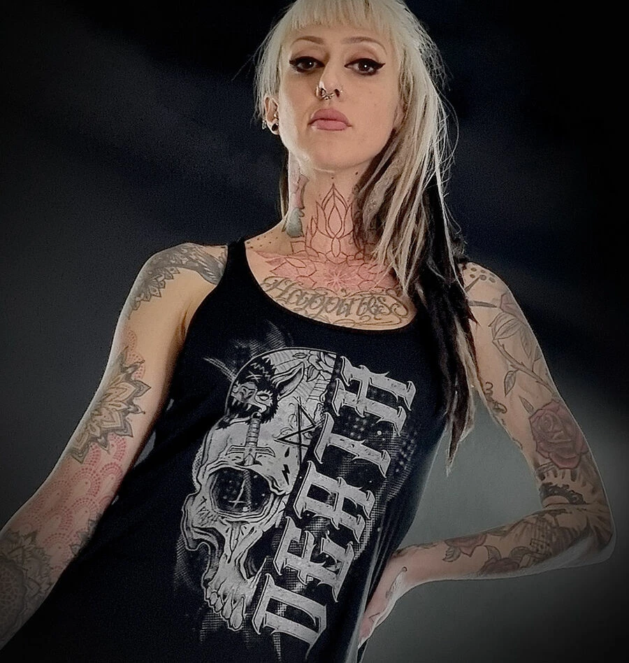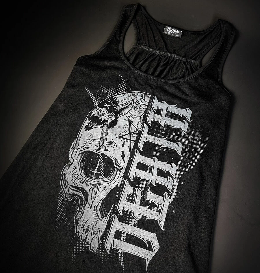 Très beau débardeur femme de style rock gothjique tattoo par Hyraw