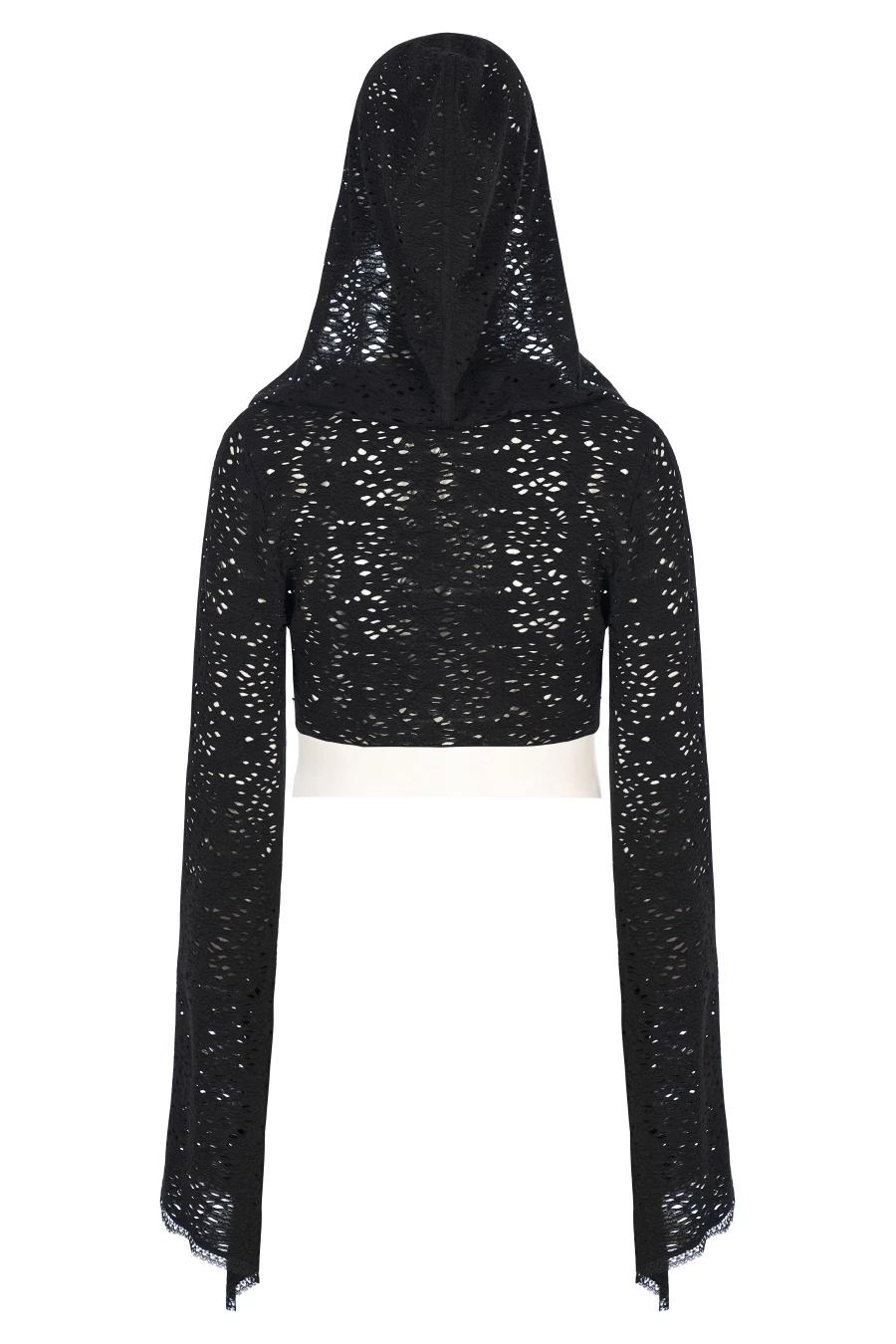 Il possède une grande capuche surdimensionnée bordée de dentelle
