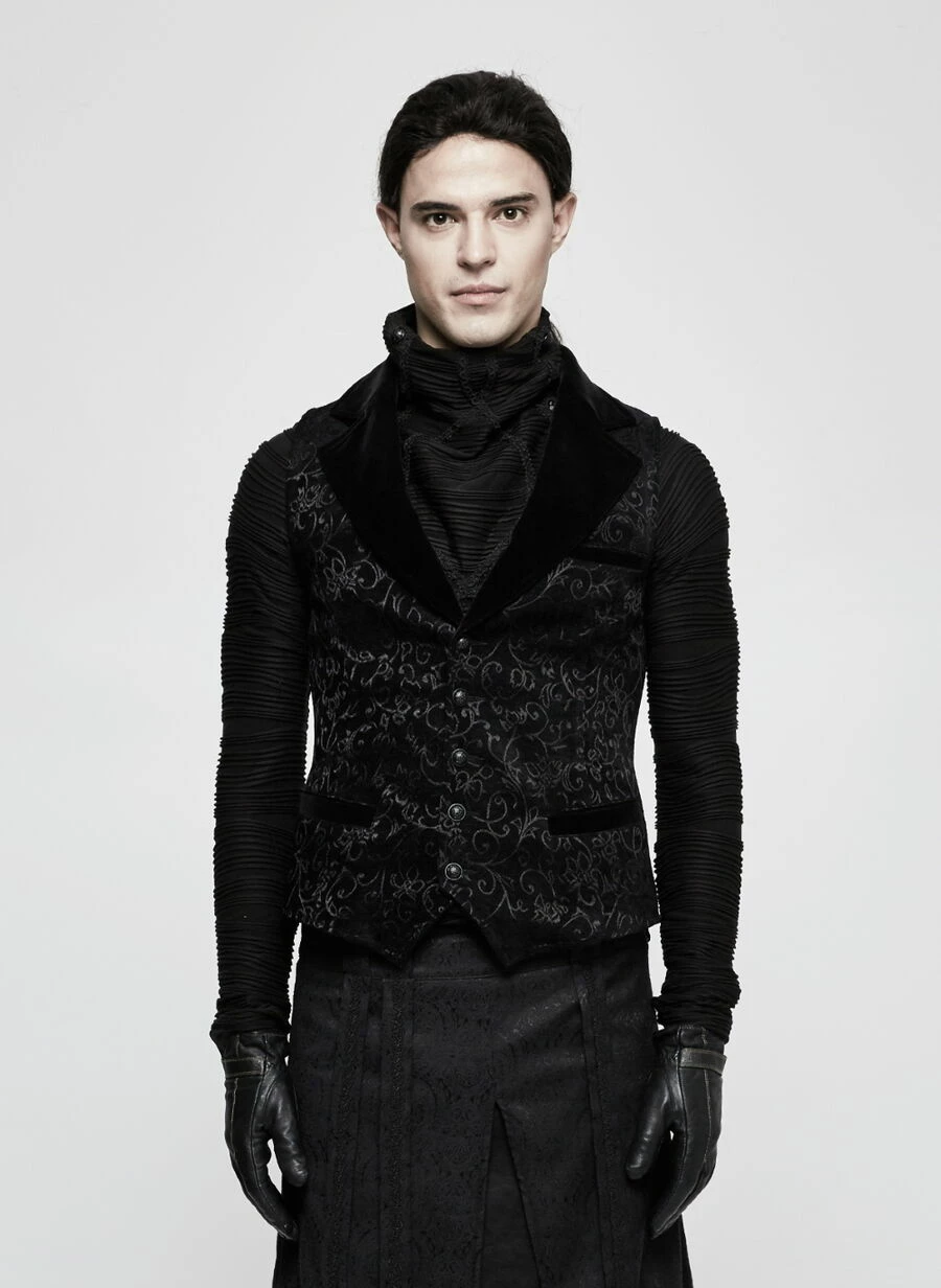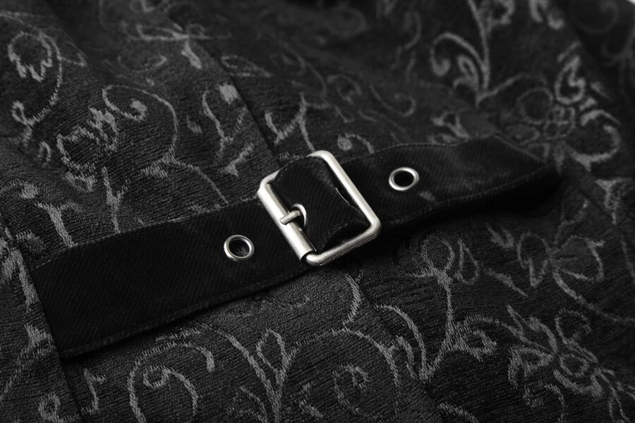 Ce gilet signé Punk Rave est fabriqué dans un luxueux tissu jacquard aux motifs baroques