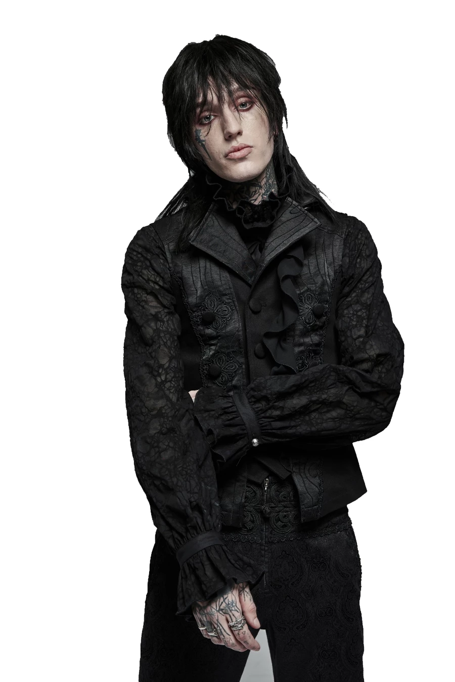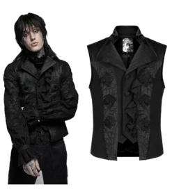 Gilet d’exception sans manches de style gothique victorien en luxueux tissu jacquard
