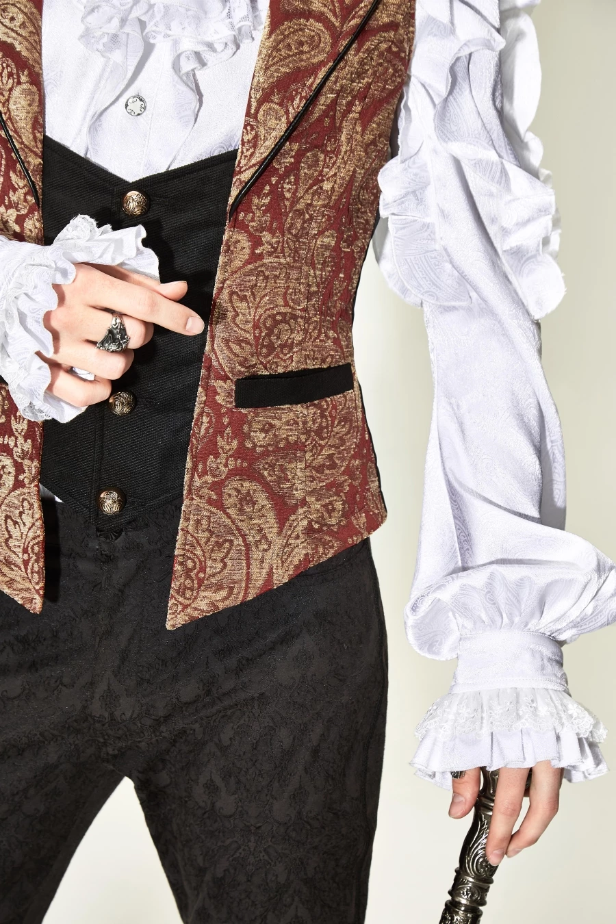 Vous aimez le look victorien trÚs classe ? Alors ce gilet est fait pour vous, couplé avec une chemise à jabot, un pantalon brocarde, un chapeau haut de forme et une canne gothique pour un look hors du temps