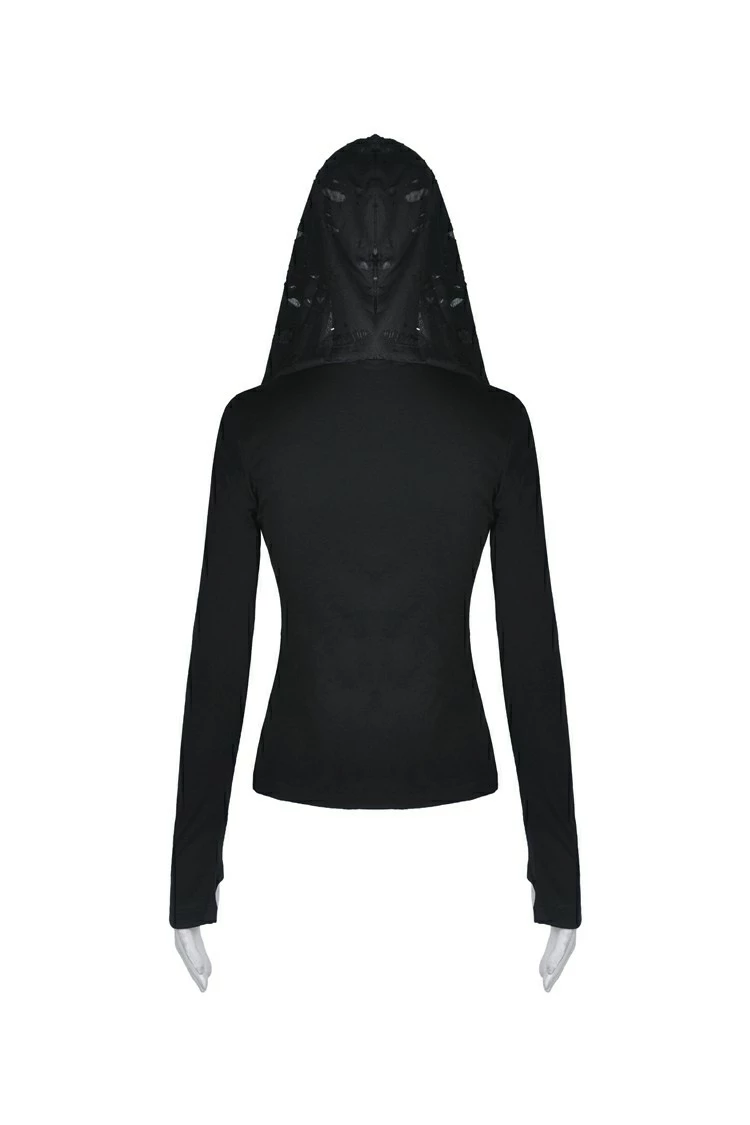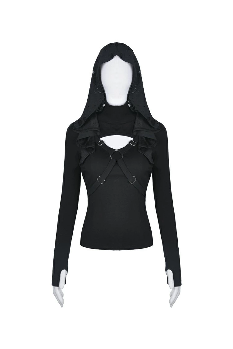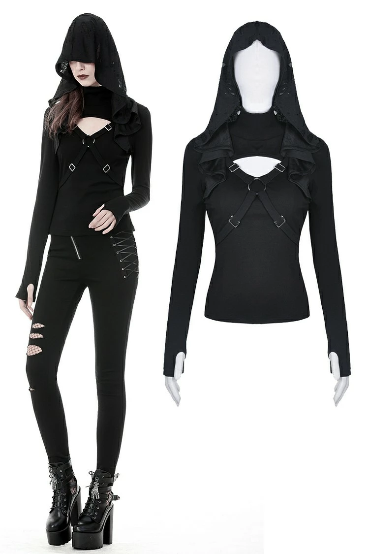 Ce haut manches longues signĂ© Dark In Love possĂšde une impressionnante capuche surdimensionnĂ©e retombant sur les Ă©paulesÂ