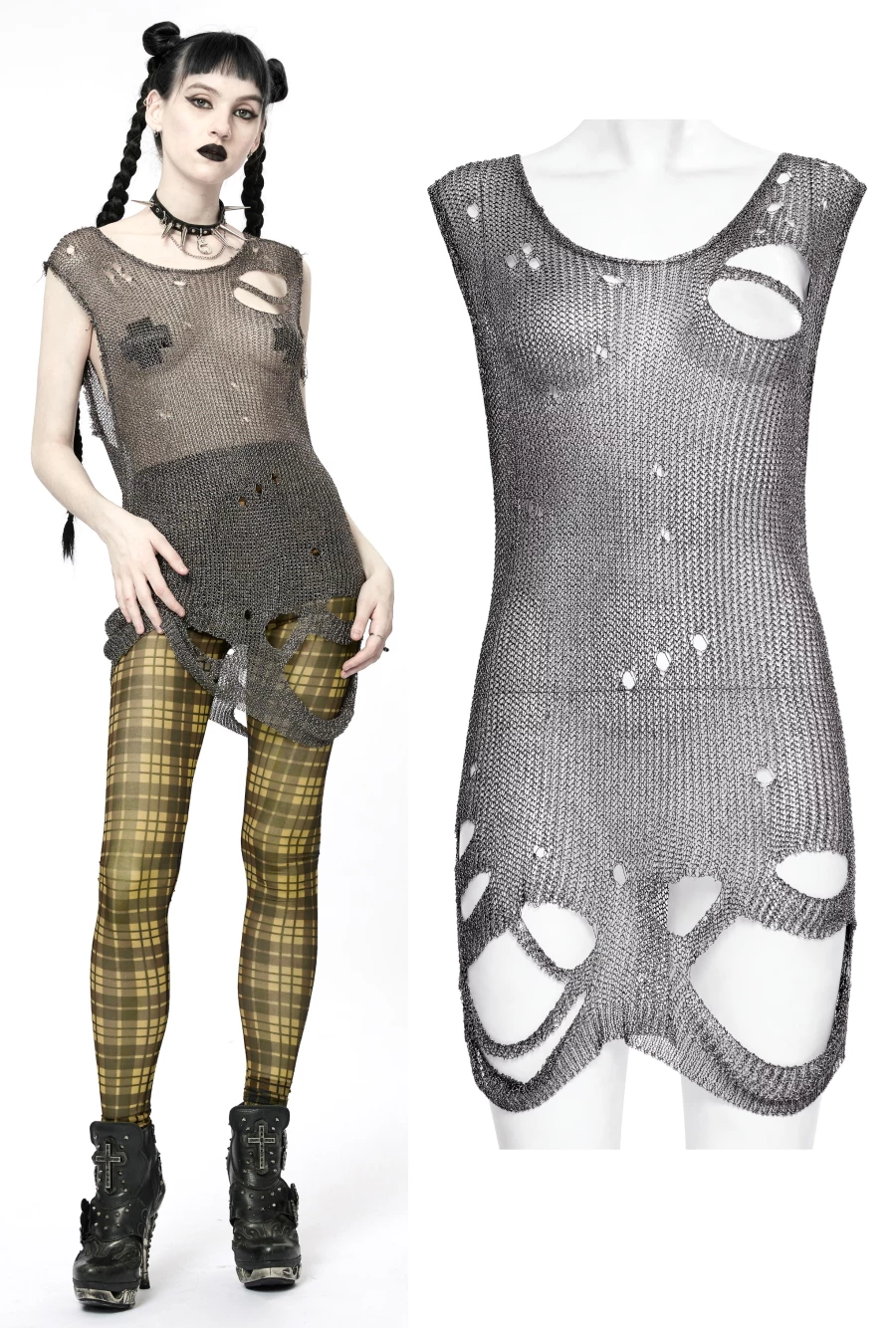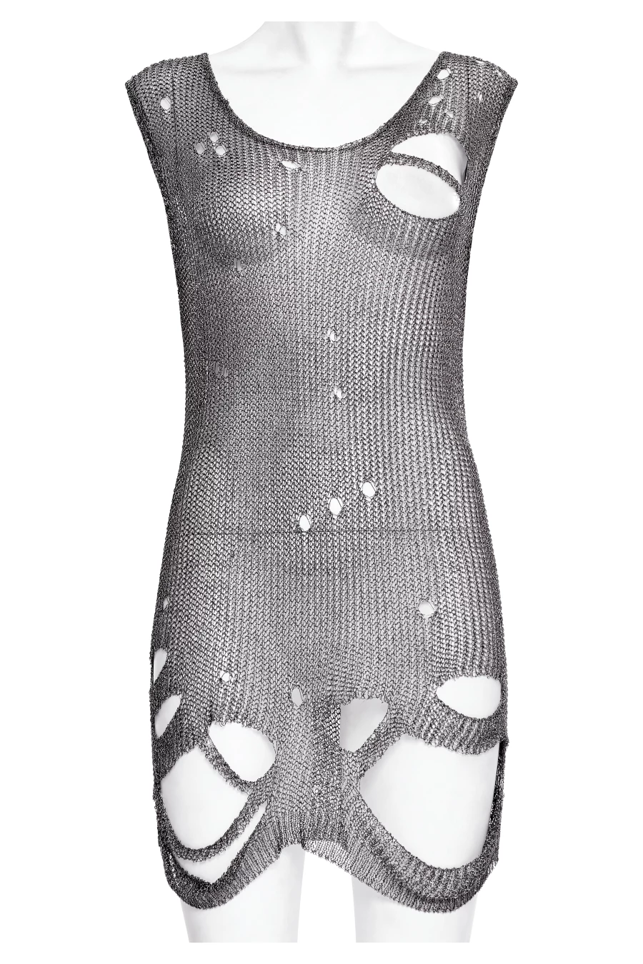 Tissu imitation mĂ©tal ! En effet ce haut post-apocalypse argentĂ©Punk Rave est fabriquĂ© dans un tissu trĂšs original imitation fil en mĂ©tal, l’aspect est bluffant !