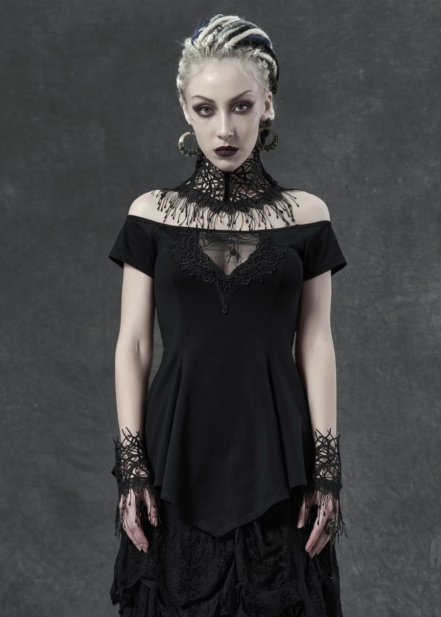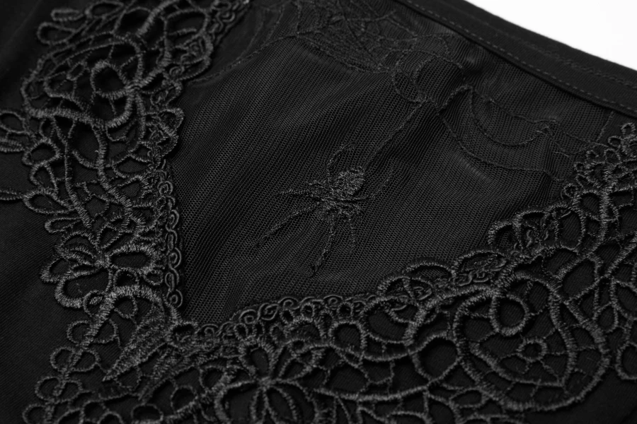 il est dĂ©corĂ© d’un grande broderie, d’une partie de tulle trĂšs fin avec une araignĂ©e brodĂ©e