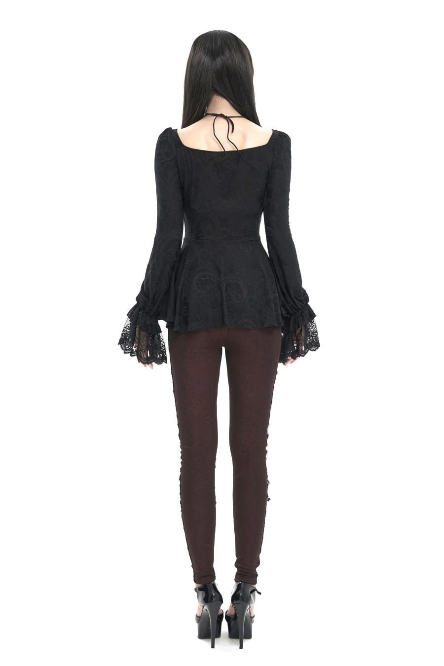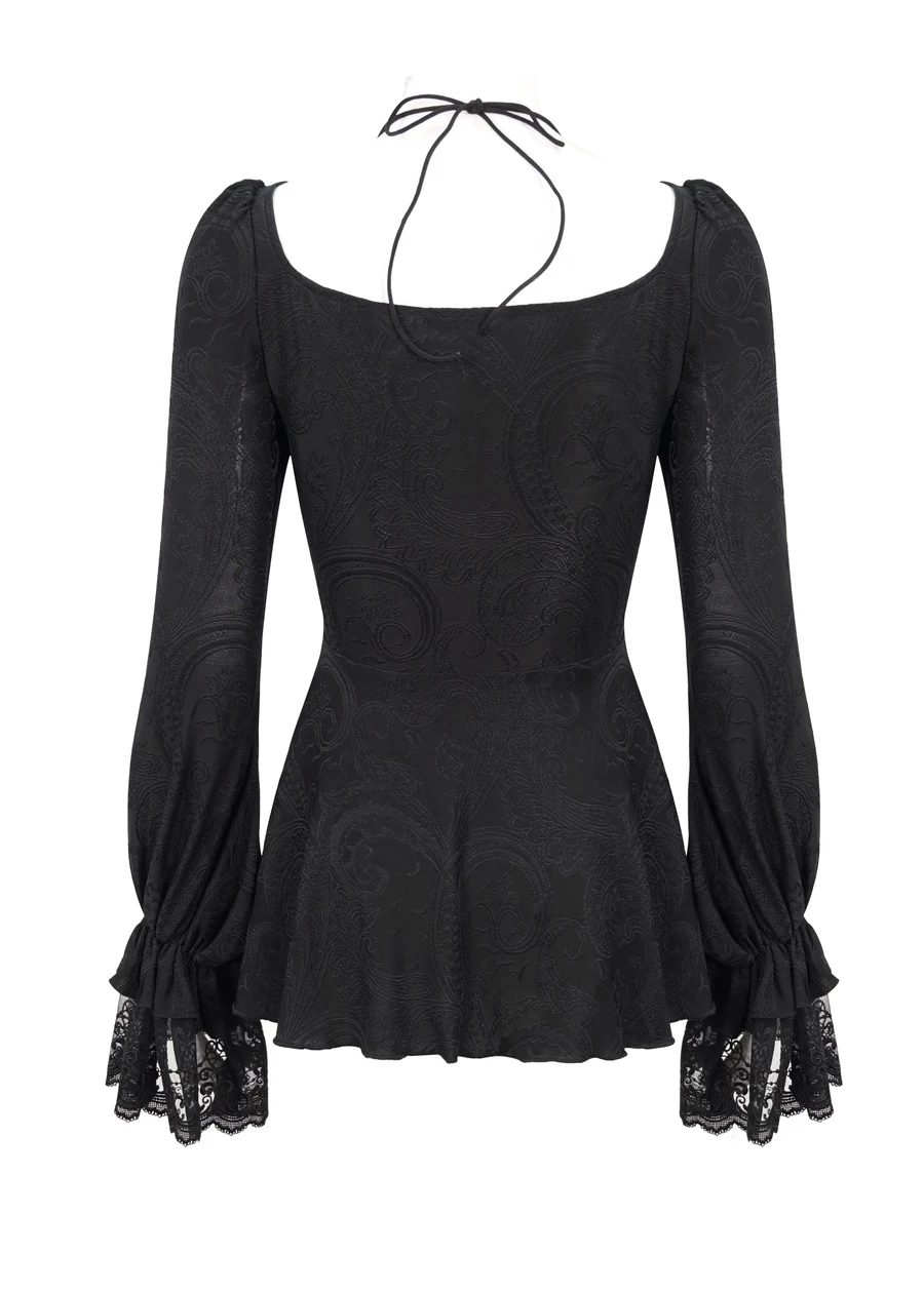 Manches cloches se terminant par du tulle trĂšs fin, de la dentelle et des broderies