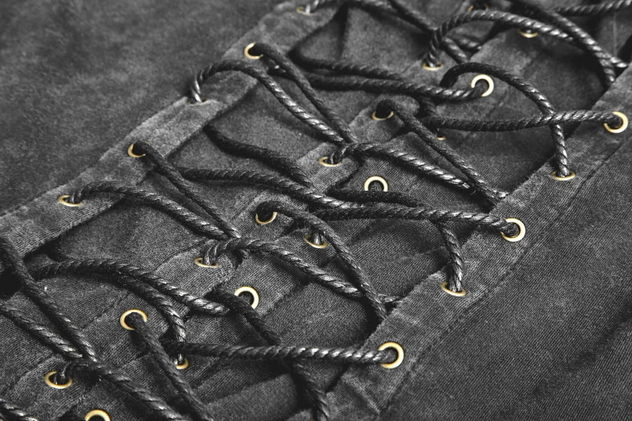 Grand cordage décoratif relié par des oeillets cuivrés lui doonant son style unique