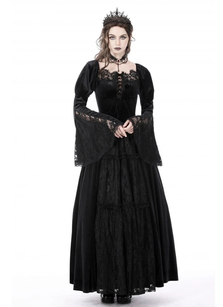 Longue robe gothique victorienne impératrice, noire à manches longues, signée Dark In Love