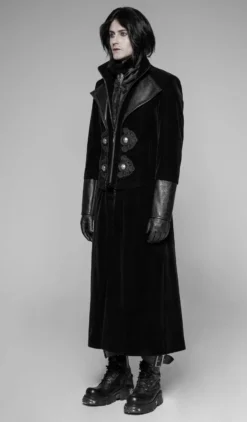 Ce manteau Poizen Industries est taillé dans un velours soft léger noir corbeau