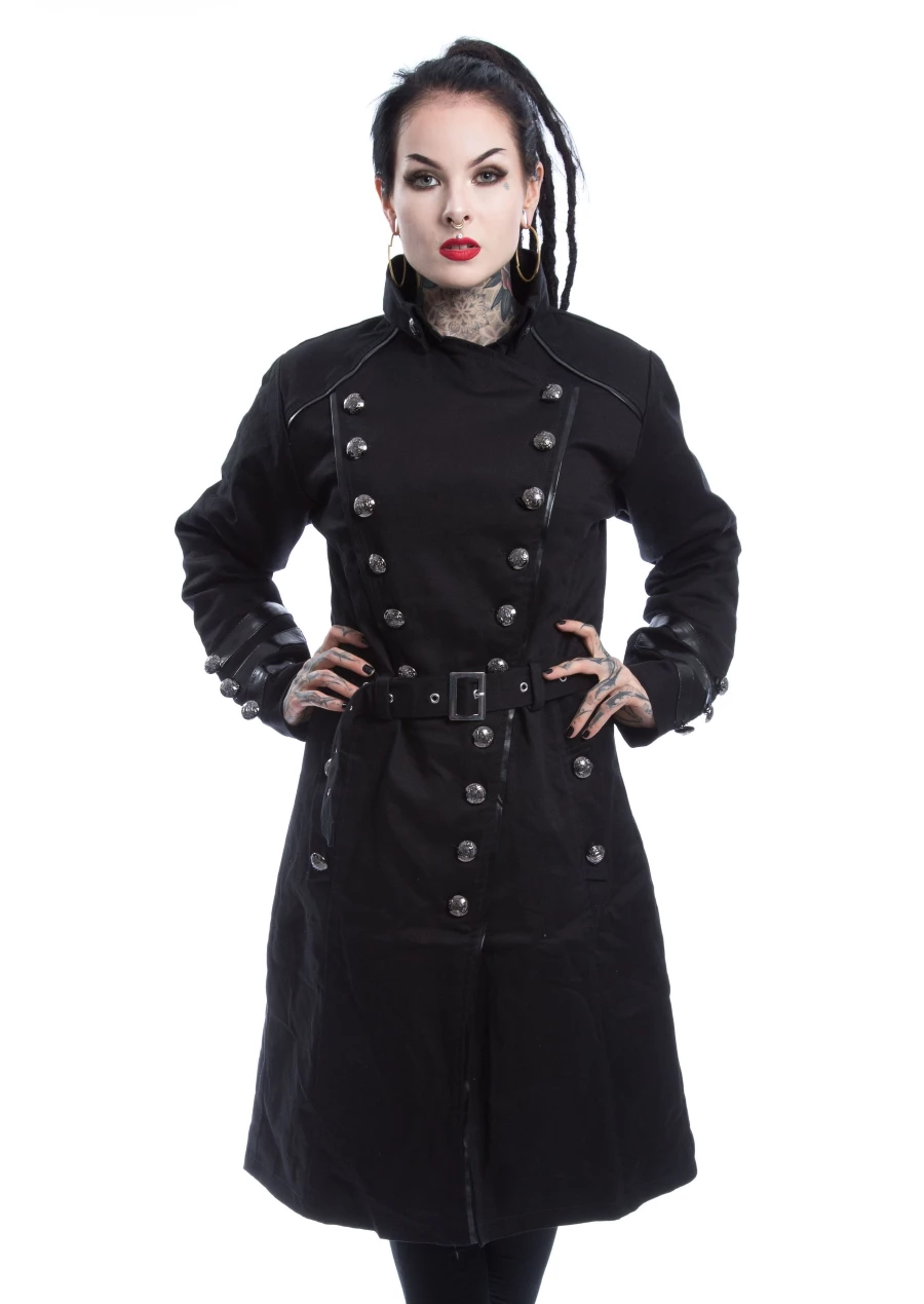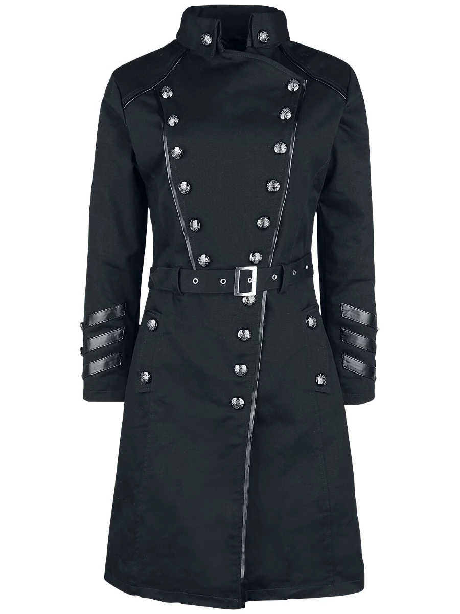 Un grand classique de la mode gothique le manteau type militaire, un look intemporel se combinant parfaitement avec toutes sortes de tenues