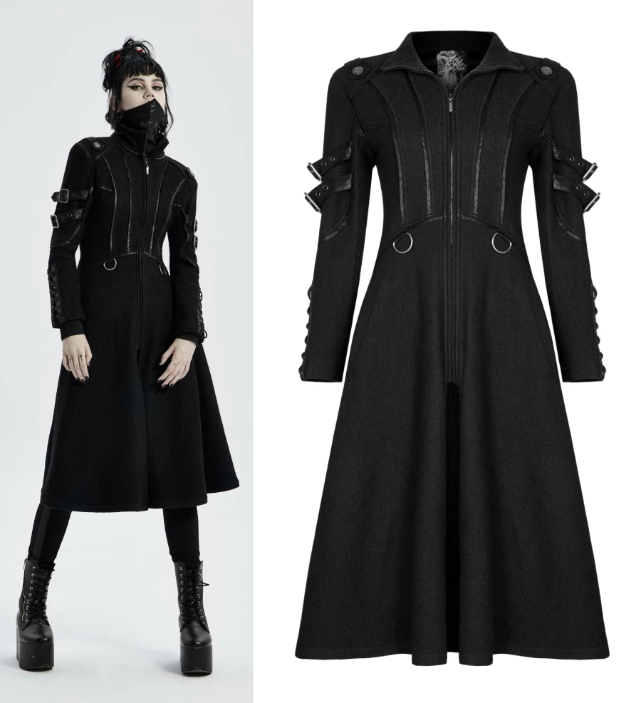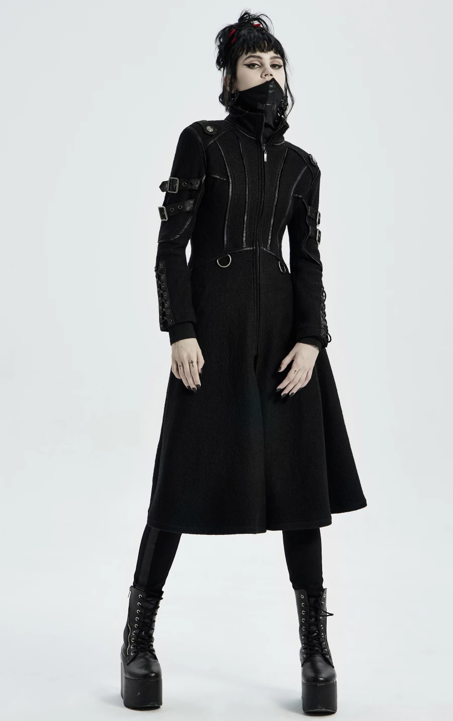TrÚs beau manteau en laine synthétique noire par Punk Rave