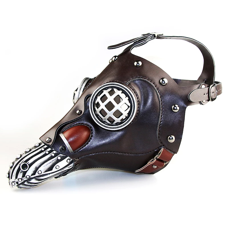 Masque steampunk « docteur de la Peste » en simili cuir marron de grande qualité