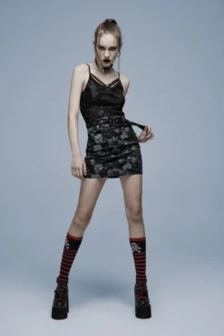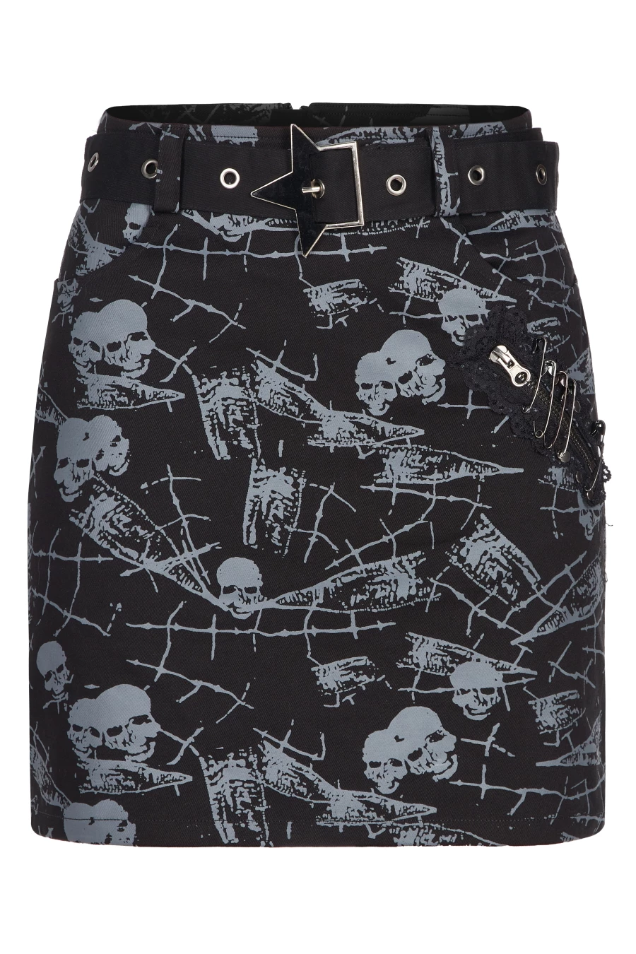 Mini jupe imprimée de skulls gris signée Punk Rave