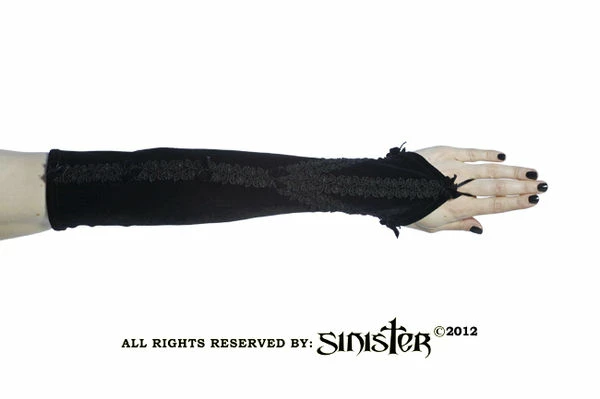 Ces mitaines sont ornĂ©es de belles broderies, elles s’accrochent sur le majeur comme dans le pur style gothique
