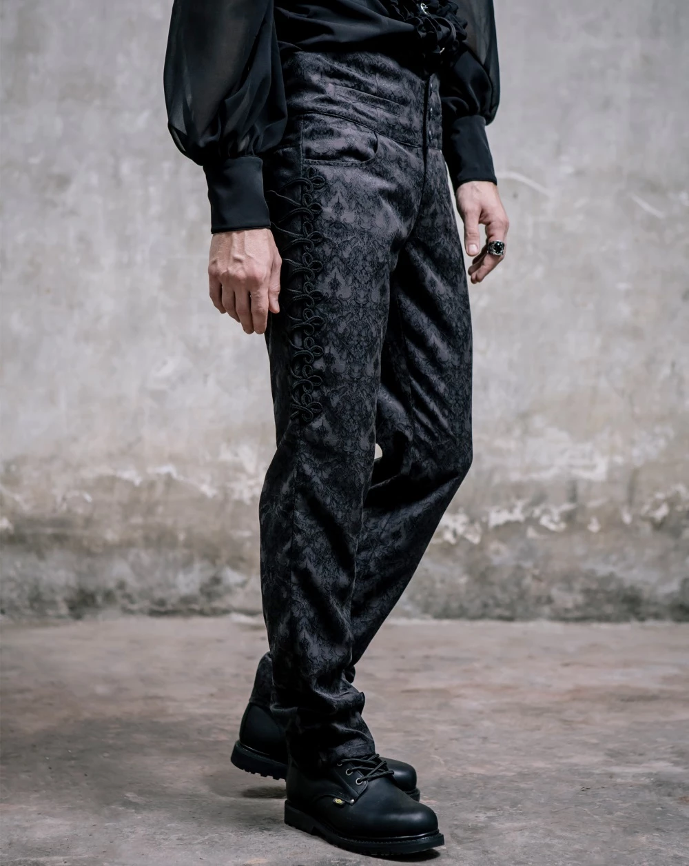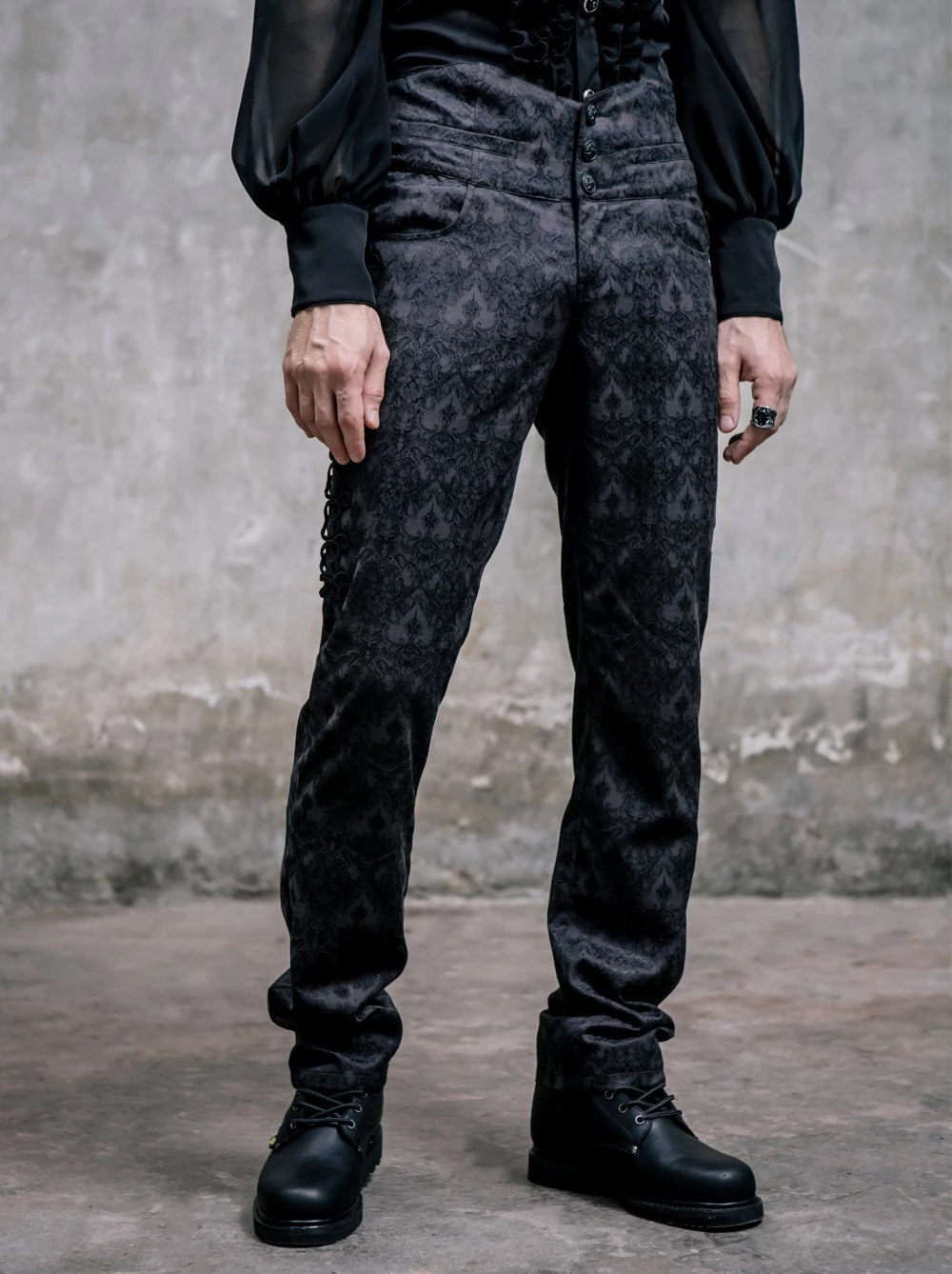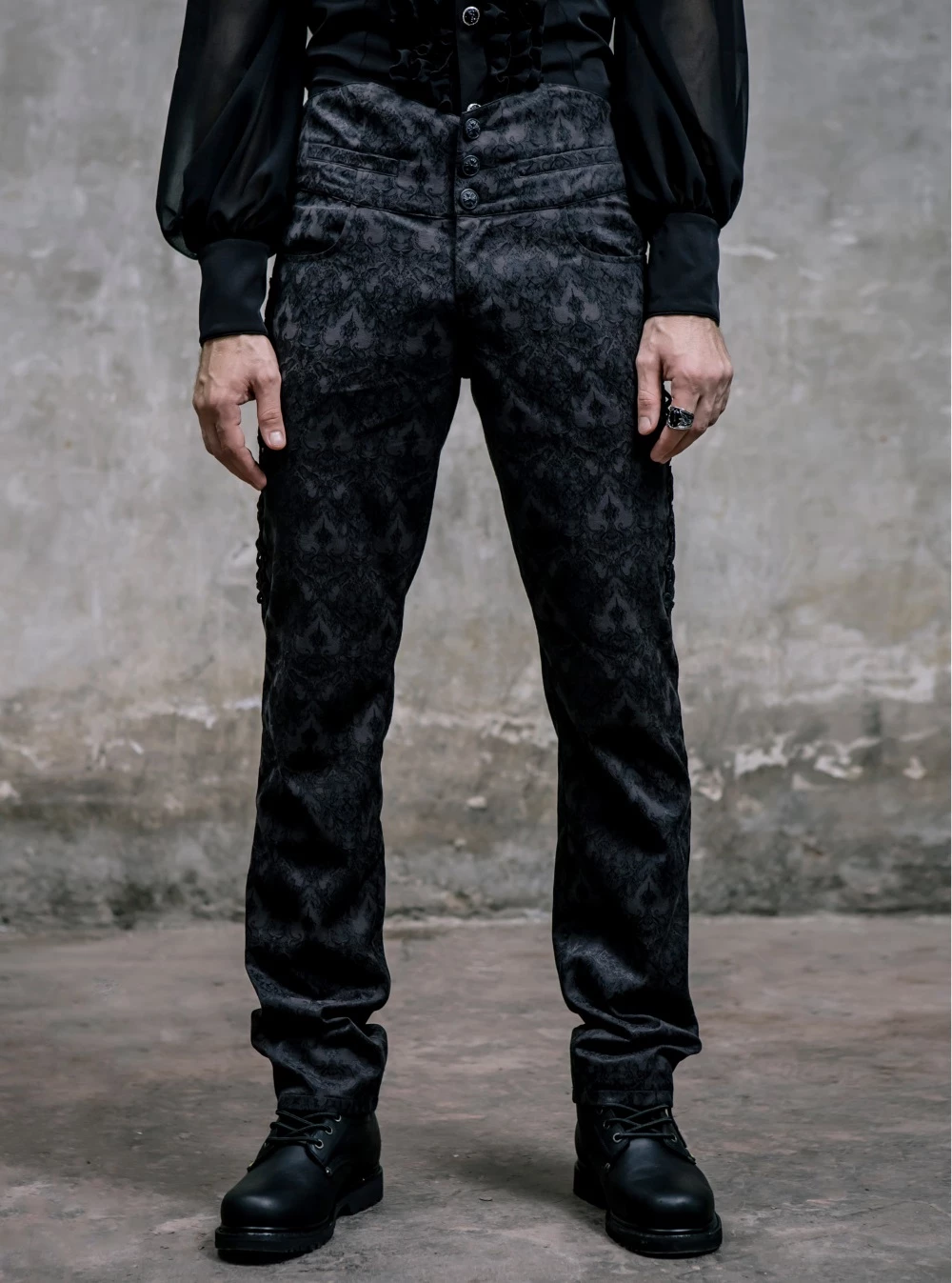 Pantalon gothique homme taille haute en tissu brocarde de trÚs belle qualité.