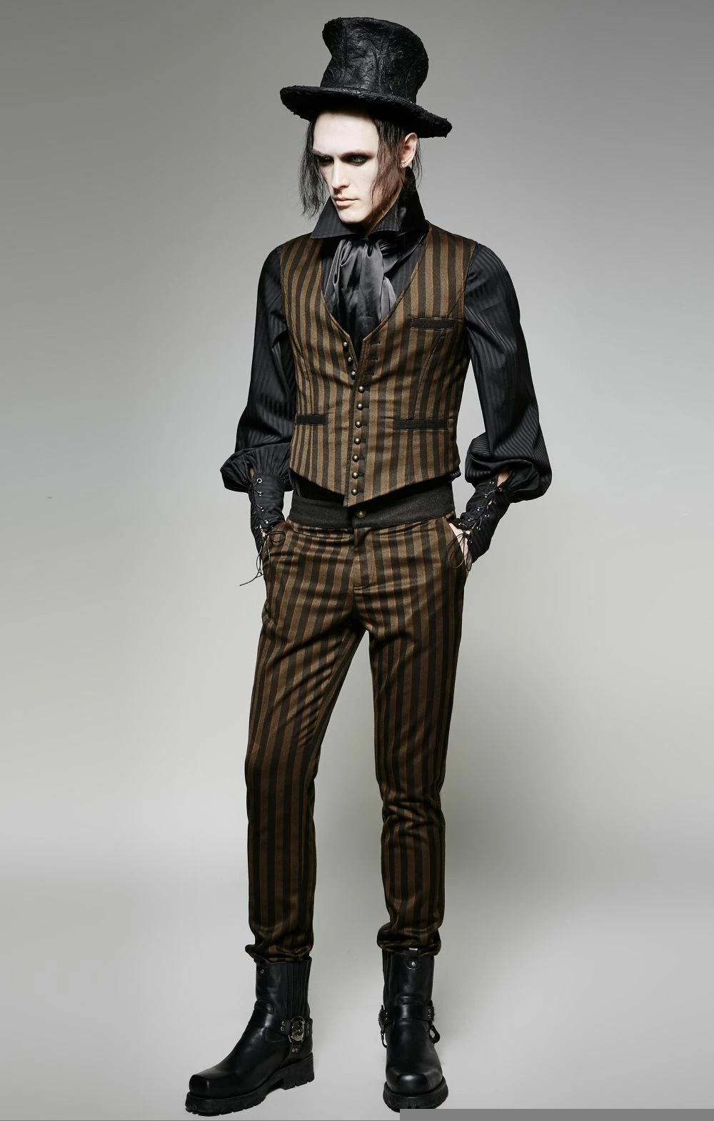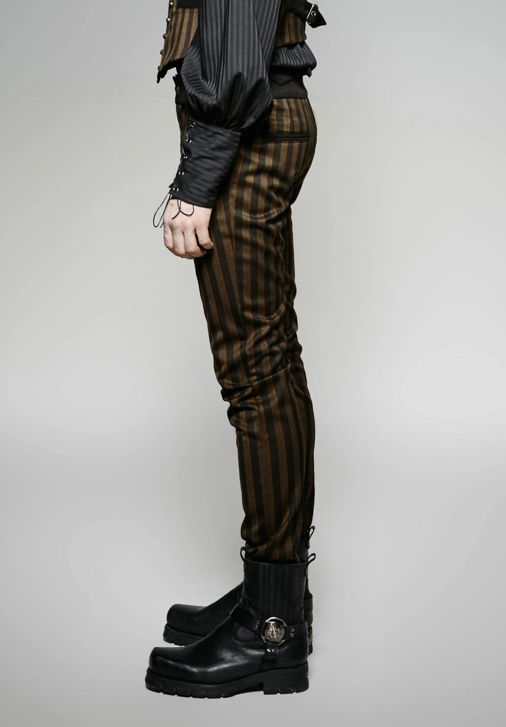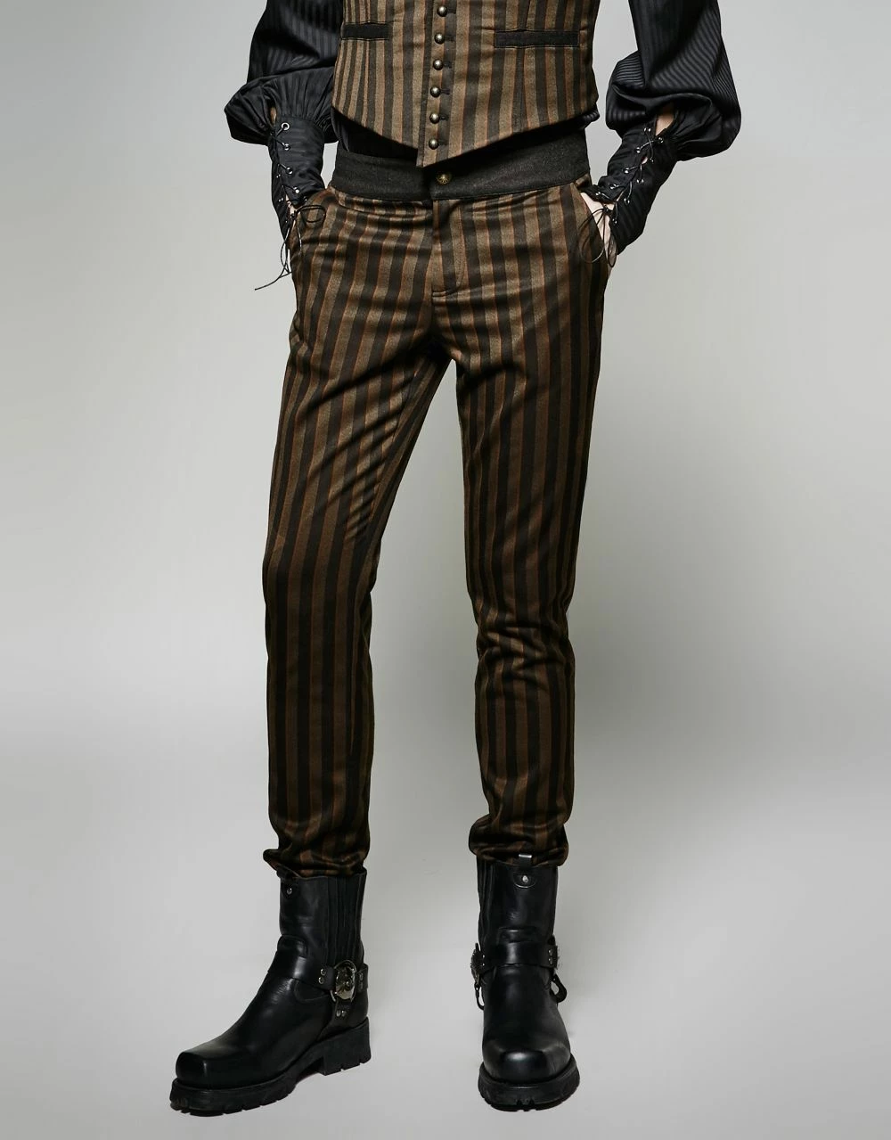 Pantalon steampunk pour homme en tissu marron rayé noir trÚs doux et agréable, coupe droite classique