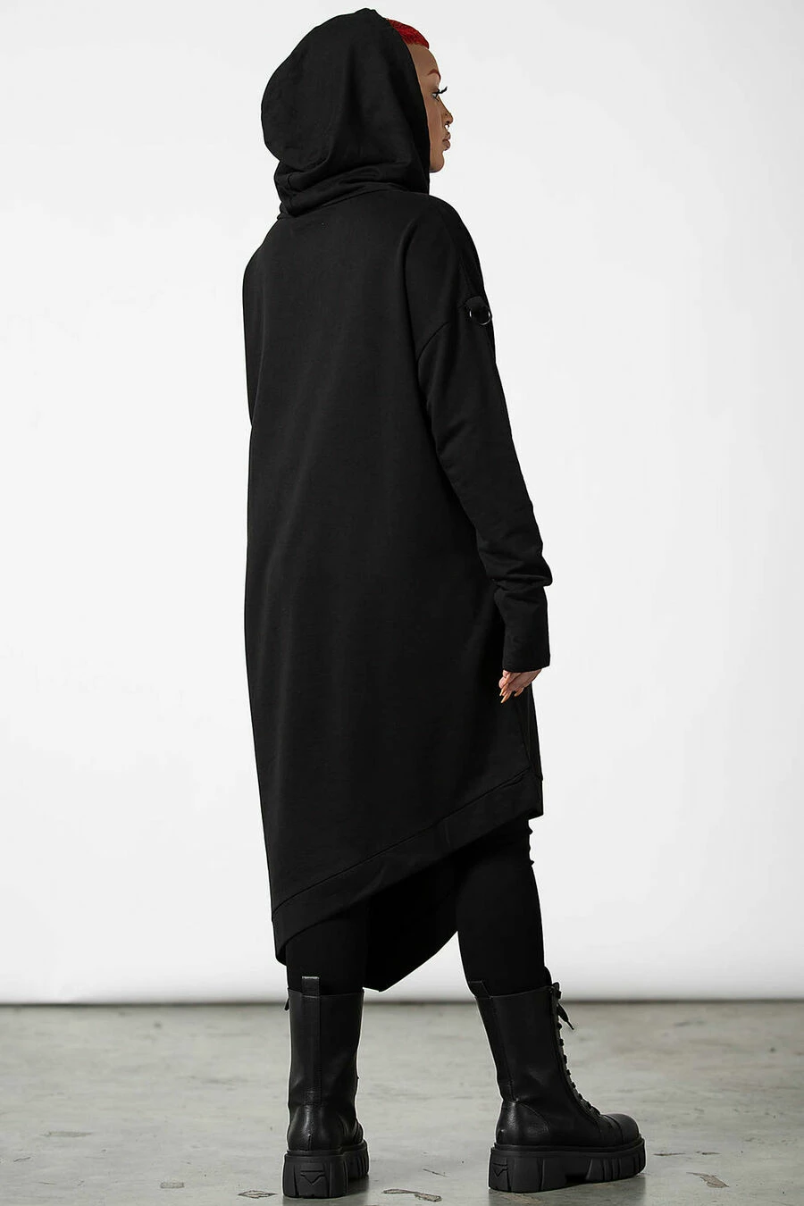 Le cordon de la capuche est en chaßne métallique noire avec deux gros anneaux