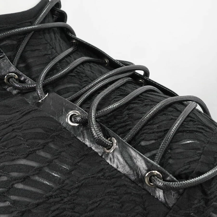 Cordage décoratif sur les épaules relié par oeillets sur des piÚces en simili cuir