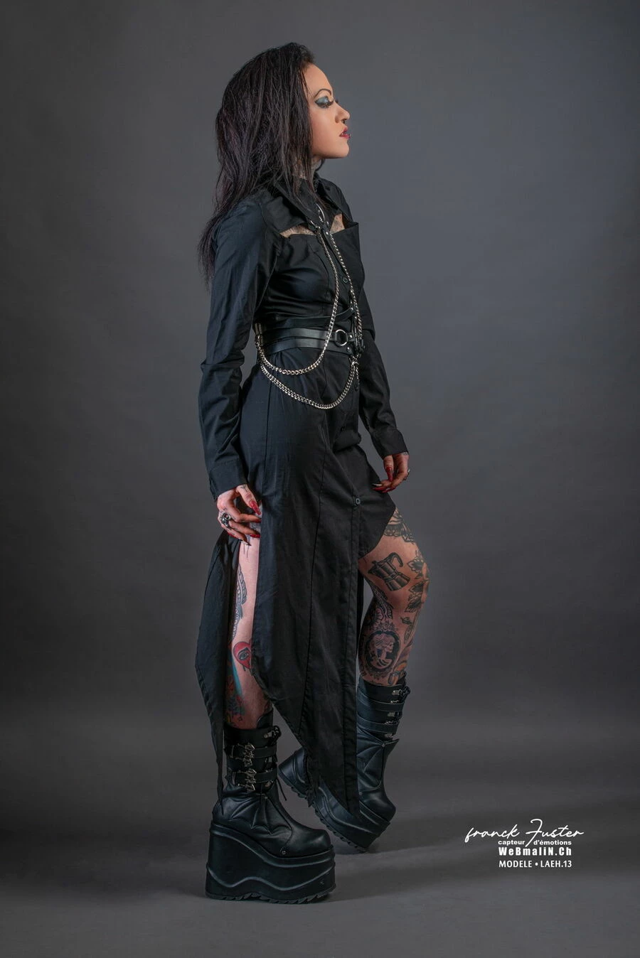 Comme notre mannequin portez-lĂ avec un harnais et une paire de bottes Ă semelles compensĂ©es, du 100% goth qui fera tourner les tĂȘtes…