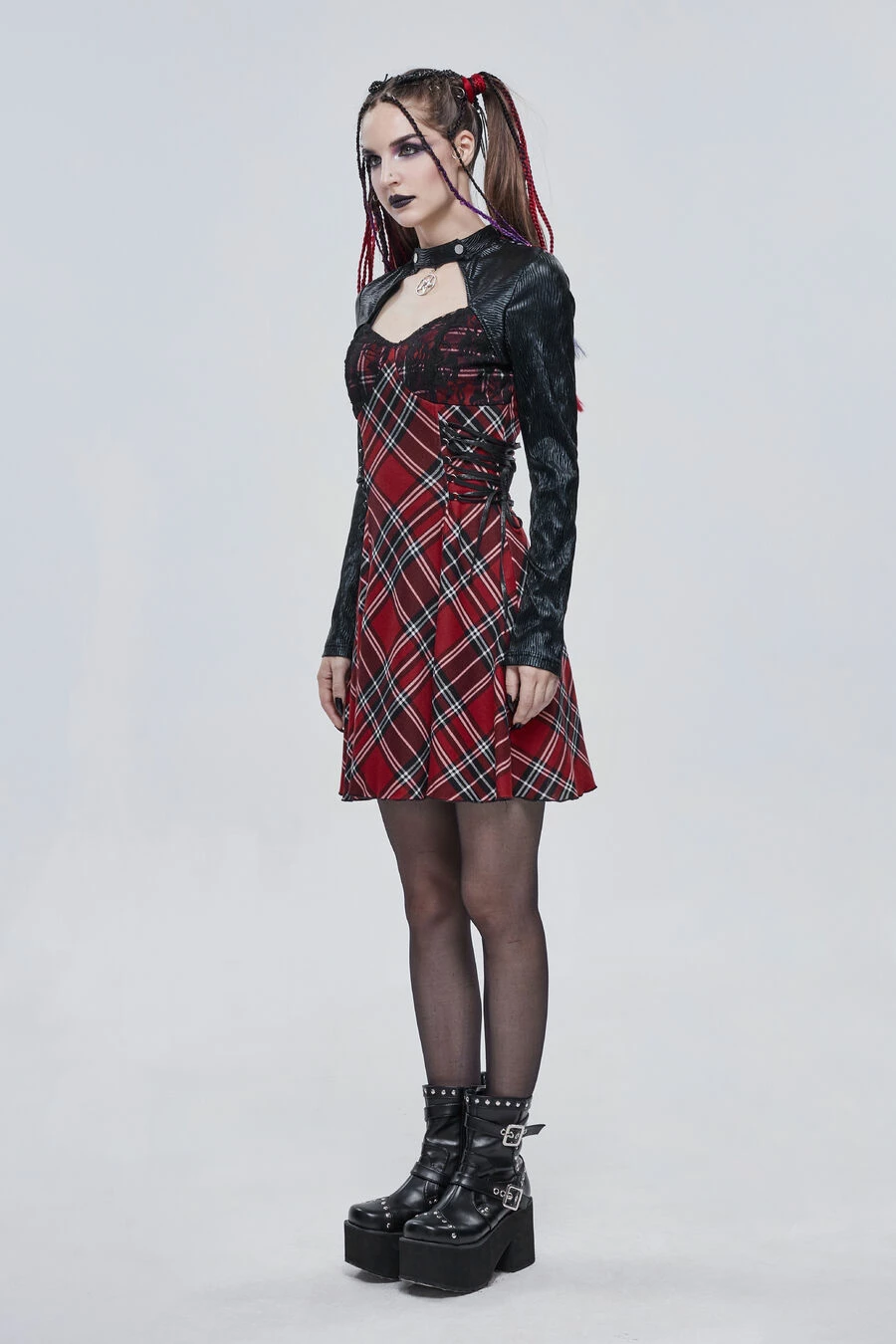 Elle possÚde des manches longues en tissu strié noir contarstant à merveille avec le tartan