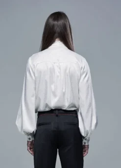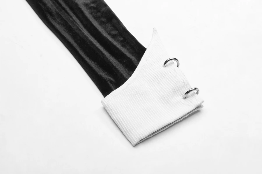 Les grands revers de manches sont Ă©galement du mĂȘme tissu blanc avec des anneaux mĂ©talliques amovibles