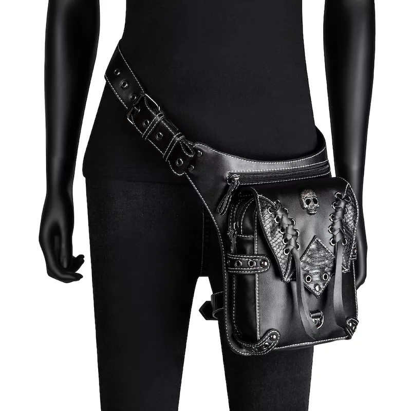 Belle sacoche gothique steampunk en cuir vegan noir