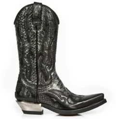 Santiags en cuir noir et gris New Rock ‘west collection’