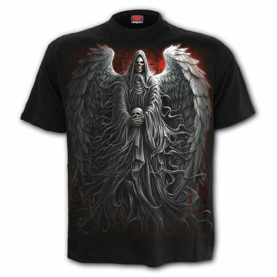 Une représentation de la mort pas comme les autres avec ses ailes déployées et sa robe en lambeaux Fixant un autre crâne, le Grim Reaper regarde froidement comme dans un miroir, reflétant l’absence de vie à l’intérieur