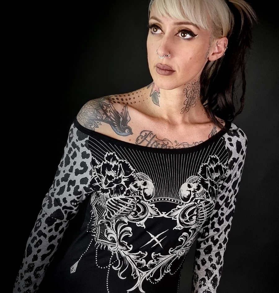 Grande sĂ©rigraphie Ă l’avant reprĂ©sentant 2 squelettes