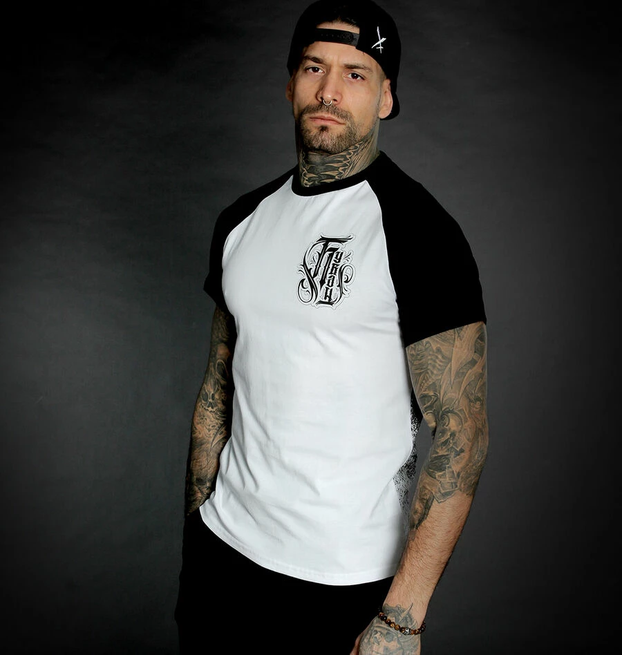 T-shirt blanc avec manches courtes noires par Hyraw
