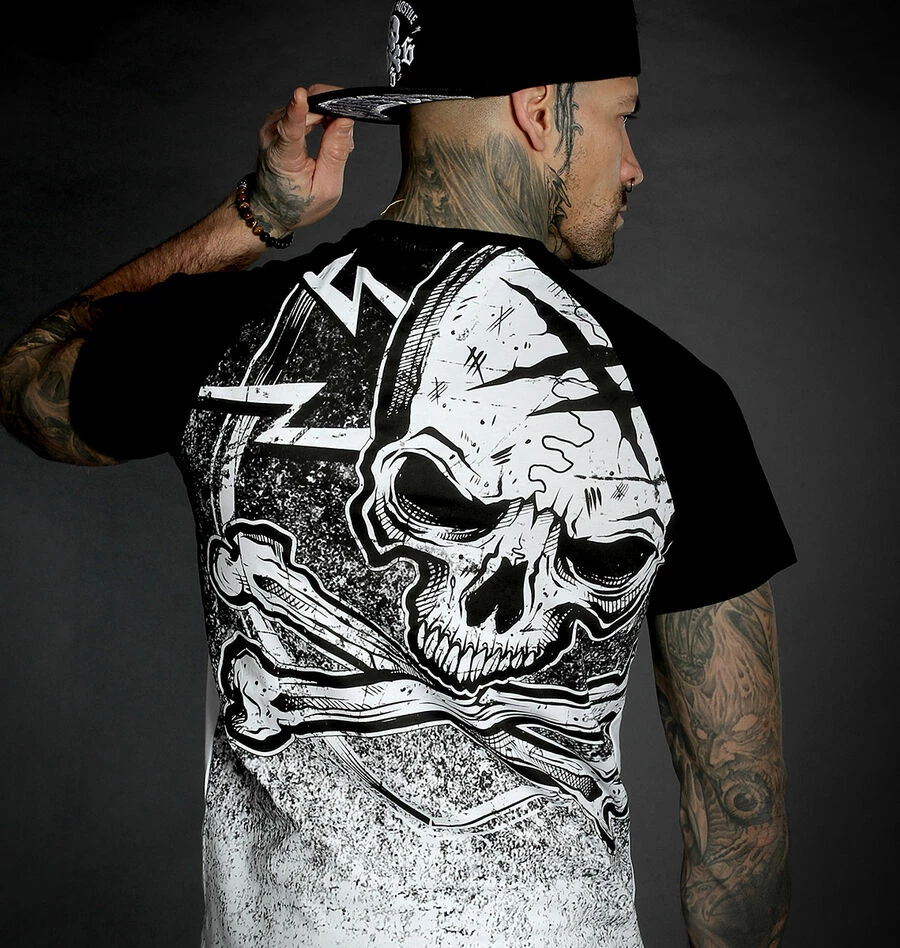 L’imprimĂ© reprĂ©sentant un gros skull est rĂ©alisĂ© avec des encres Ă l’eau, procĂ©dĂ© de qualitĂ© vous garantissant une trĂšs bonne longĂ©vitĂ© et rĂ©sistance aux lavages