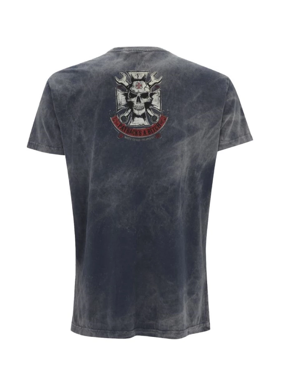 T-shirt biker à manches courtes en version bleu délavé look vintage