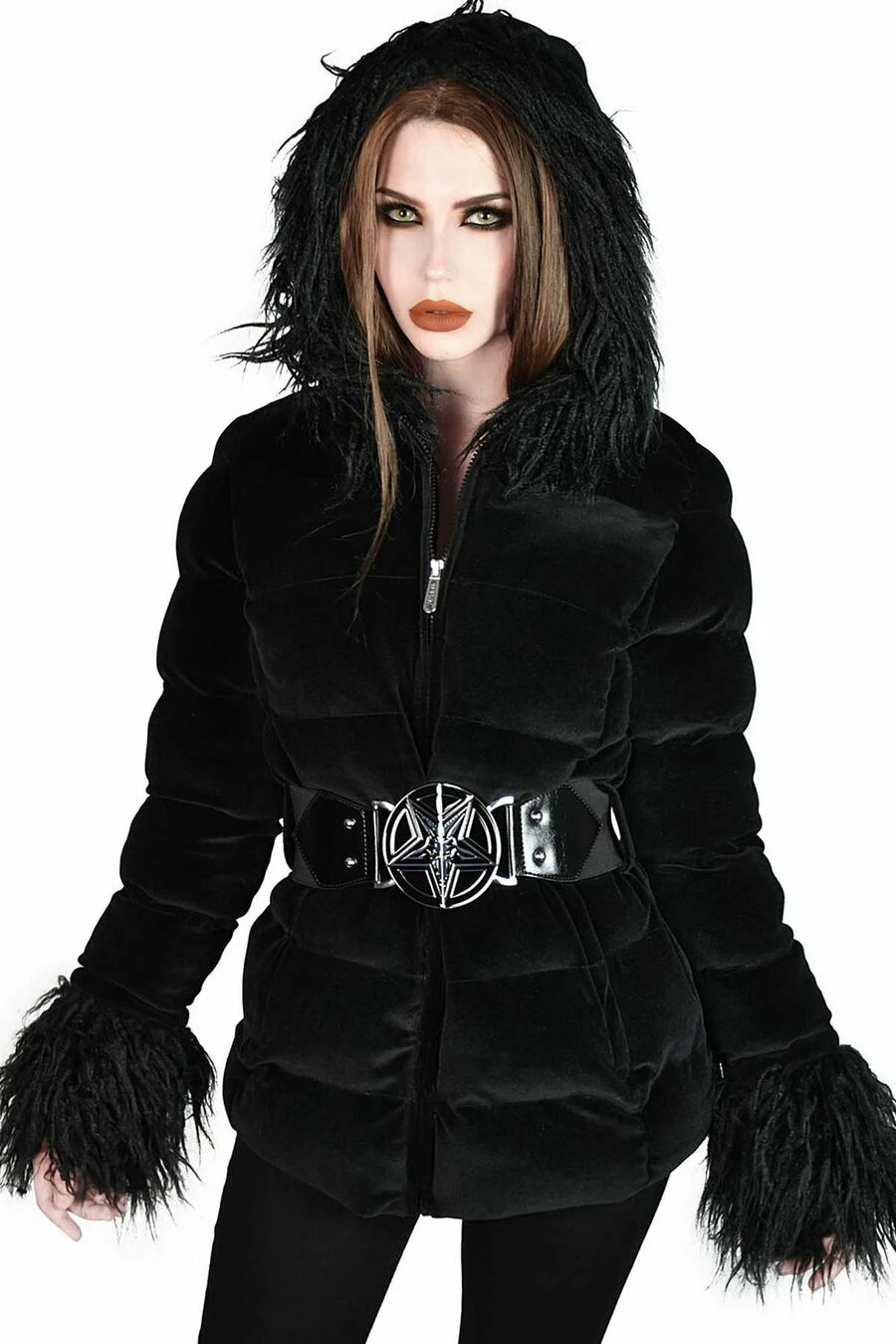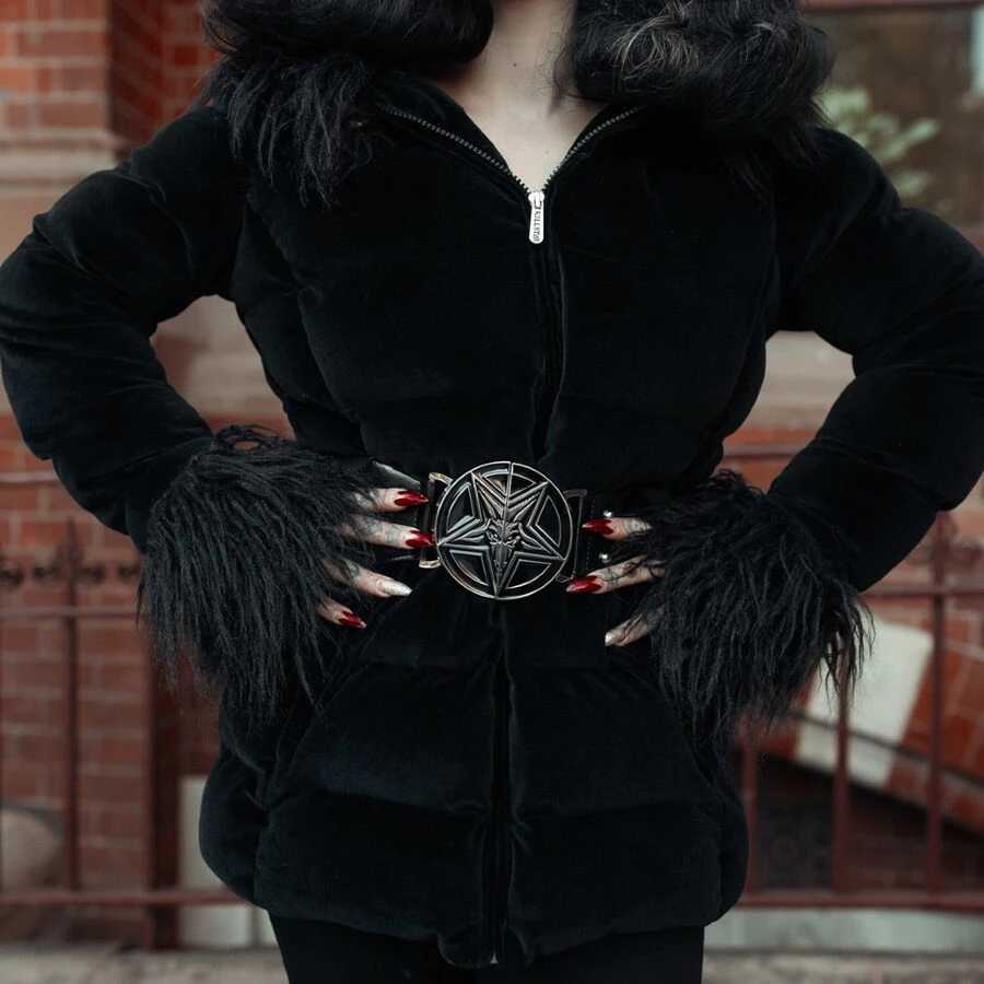 La veste est accompagnée de sa ceinture élastique amovible avec boucle en métal « Baphomet »