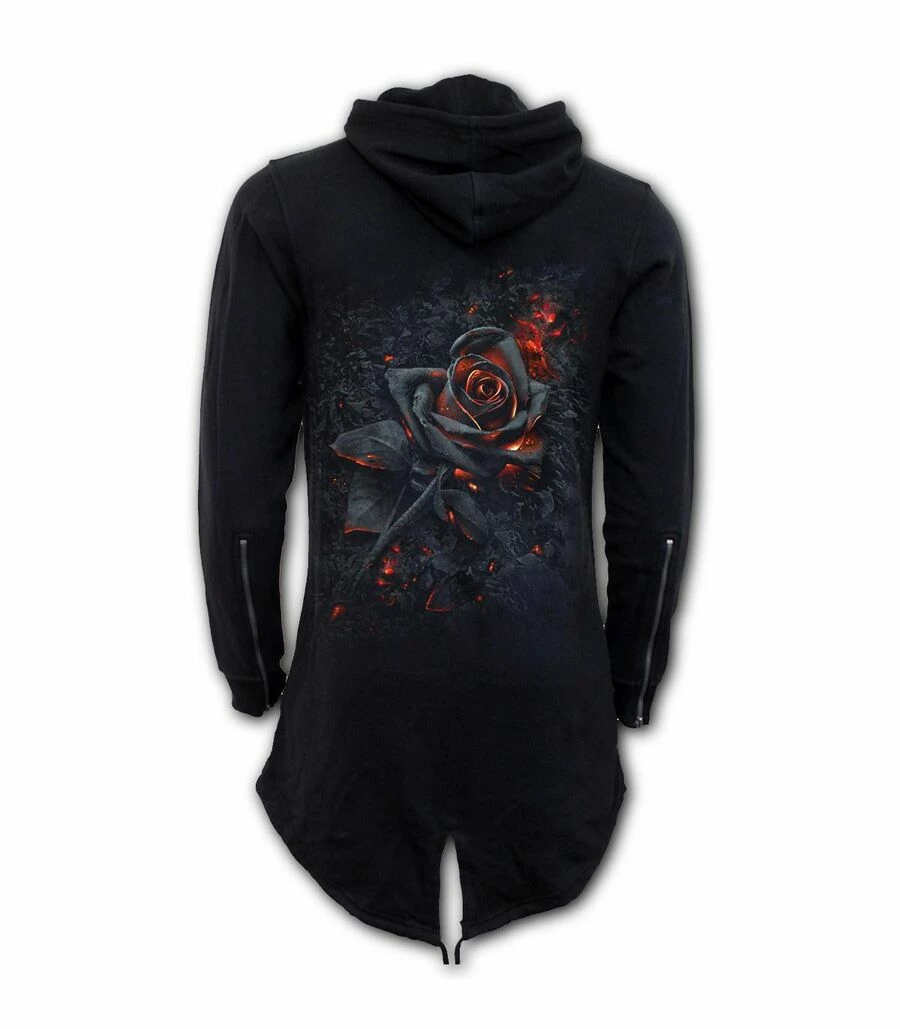 Longue veste à capuche en tissu sweat noir
